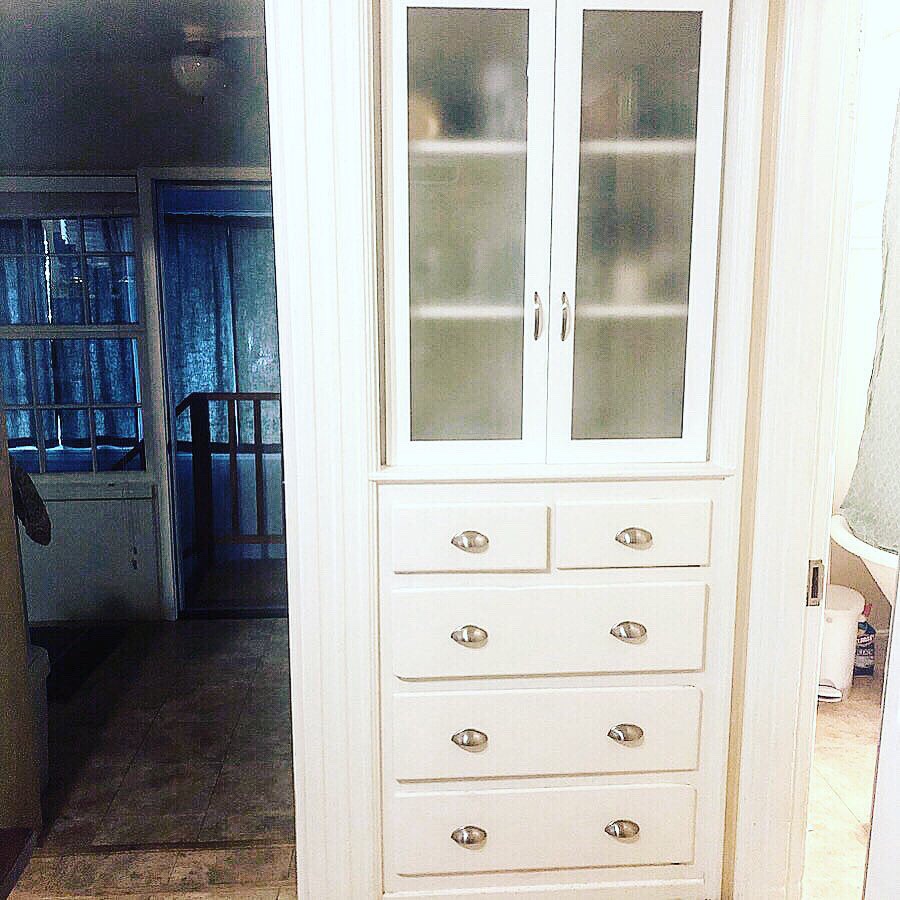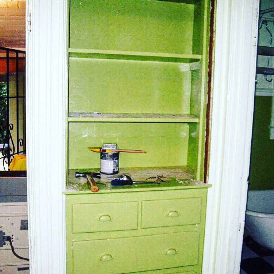 we were so happy to refurbish these drawers abs cabinet area to keep that 1920s charm ✨