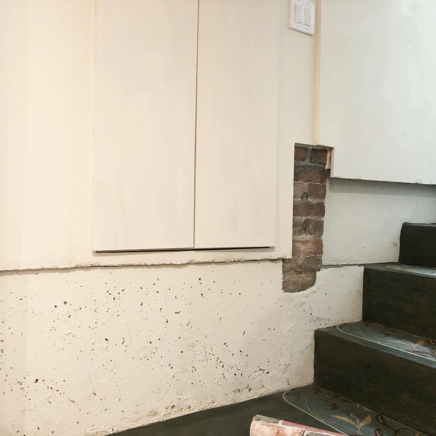 Can you spot the original brick? I have been wanting to do this project for a long time. So I set my mind (and my time) to it and got it done! This is a funky spot in our house that goes down by our stairs. I decided to use wallpaper to cover over the white concrete near some exposed brick in our downstairs to create a #fauxbrickwall. It’s not perfect and it’s a temporary fix but it totally changes the space and makes it more inviting as you come down the stairs. Working on more projects up my sleeve that I can’t wait to show you! #farmhousedecor #homedecor #interiordesigninspiration