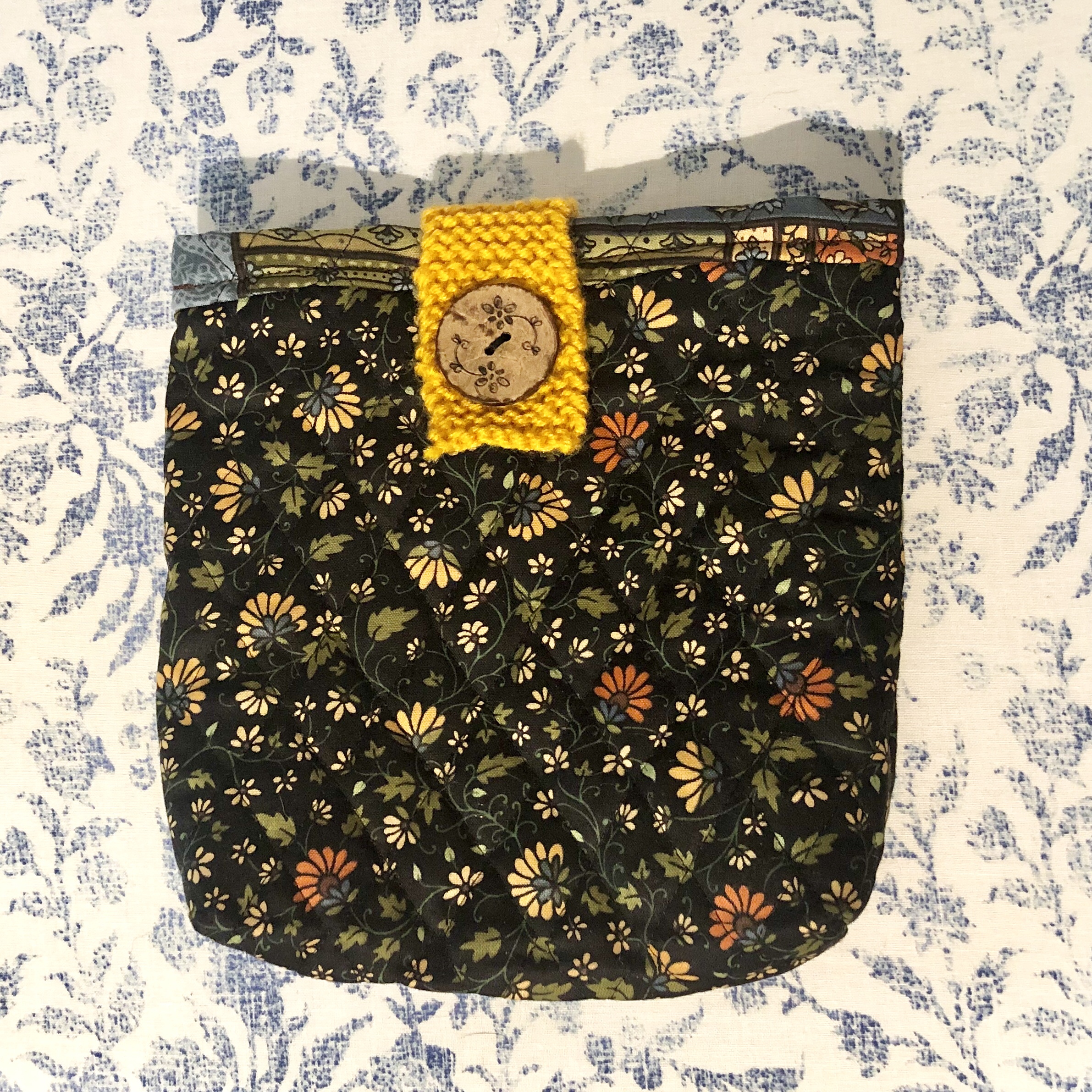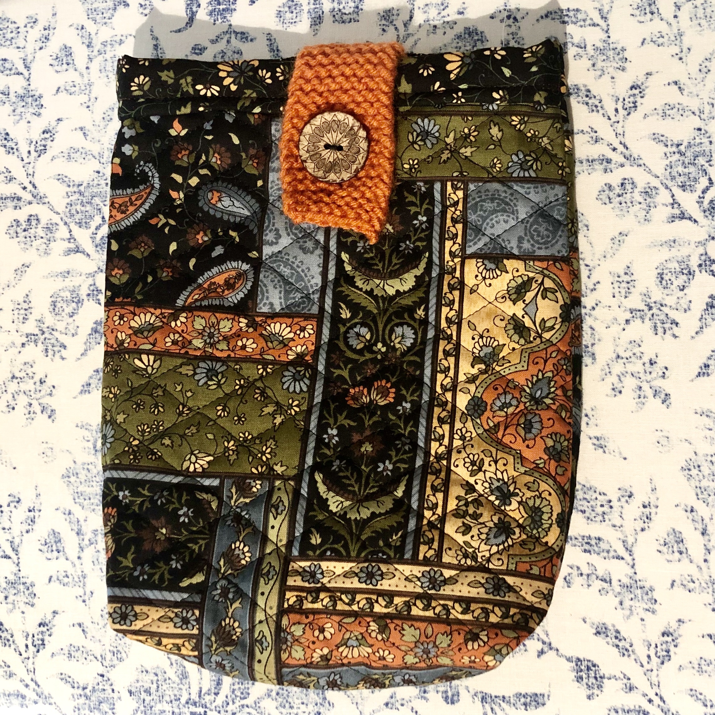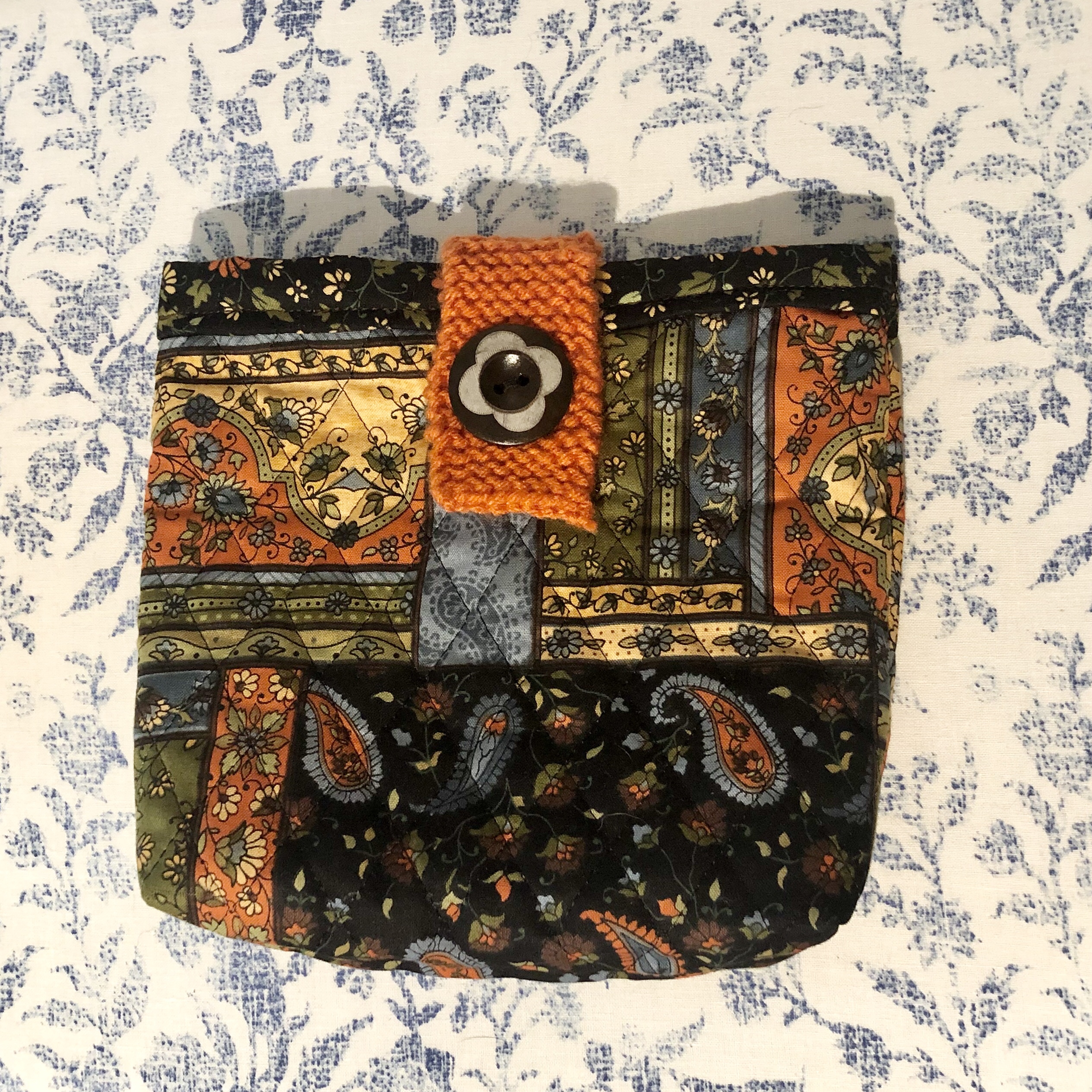 The newest additions to my Etsy shop are three newly crafted cosmetic bags, all with quilted fabric and knit button clasps. These are perfect for tossing in your hand bag to carry your lotion and lipsticks or even an easy overnight cosmetic tote for a work trip. I did a taller sized tote (10×6 inches) and two varied smaller sized totes that measure 8×6 inches.