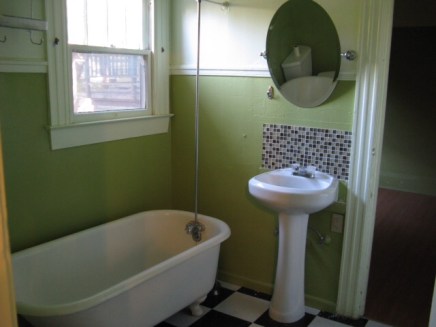 However the bathroom, we decided to paint all white as a fresh clean slate to start re-designing it from scratch. Now, we have an old house and therefore old features in our bathroom, including a claw foot tub and an old medicine cabinet. We are going to do a full bathroom remodel where we put in a shower some day but not this year. With this project, we are going to give this bathroom a little bit of a face lift, which helps immensely for both some of the functional things we want to see changed and aesthetically. I’m calling this a remodel, not a renovation for that purpose.