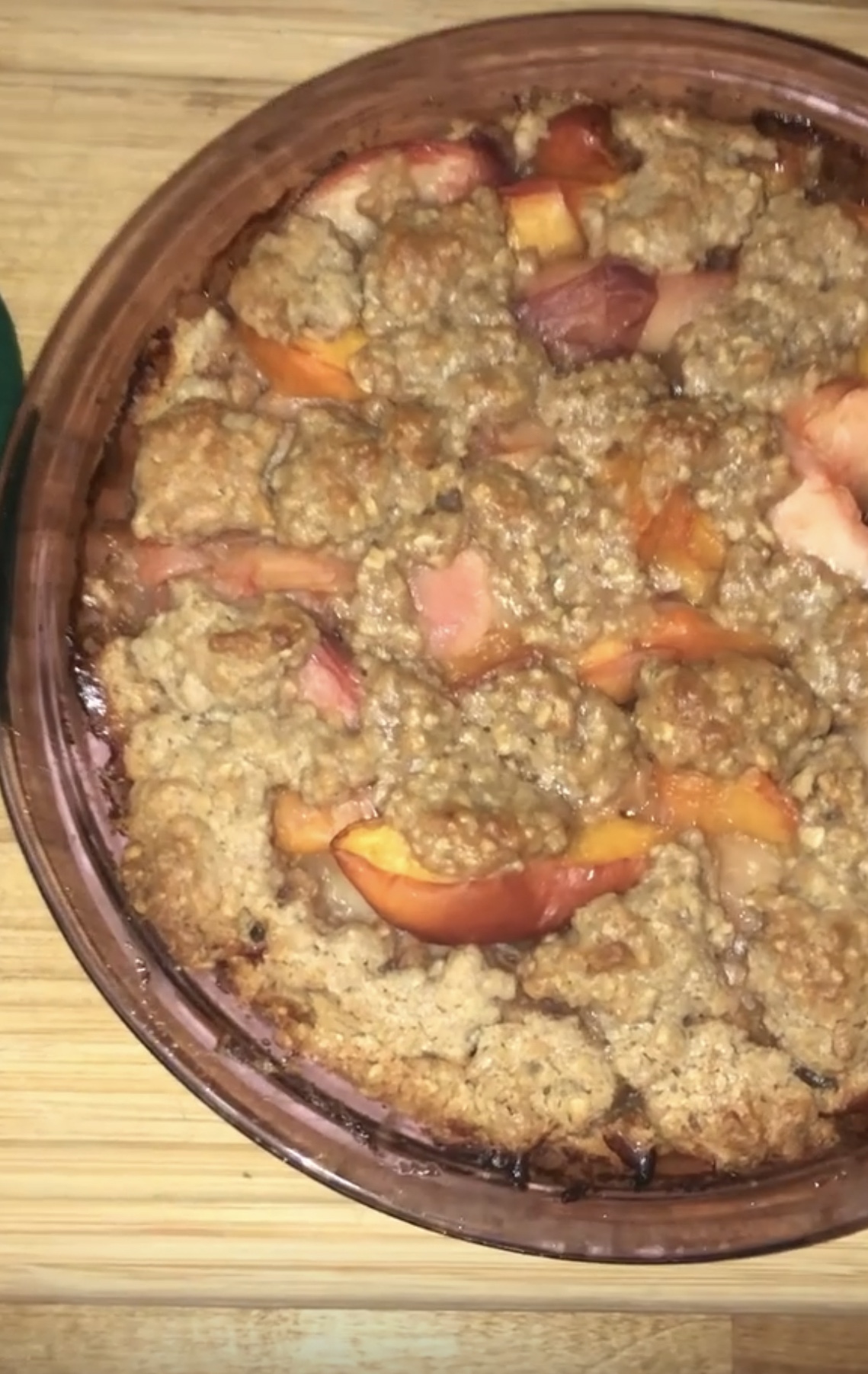 Incorporating summer fruit into new recipes is always a must-try. I recently found an Apricot Crunch Recipe in one of my cookbooks, and decided to modify it to Nectarine Crunch. Where the original recipe called for dried apricots, I choose to do fresh nectarines, well because summer!